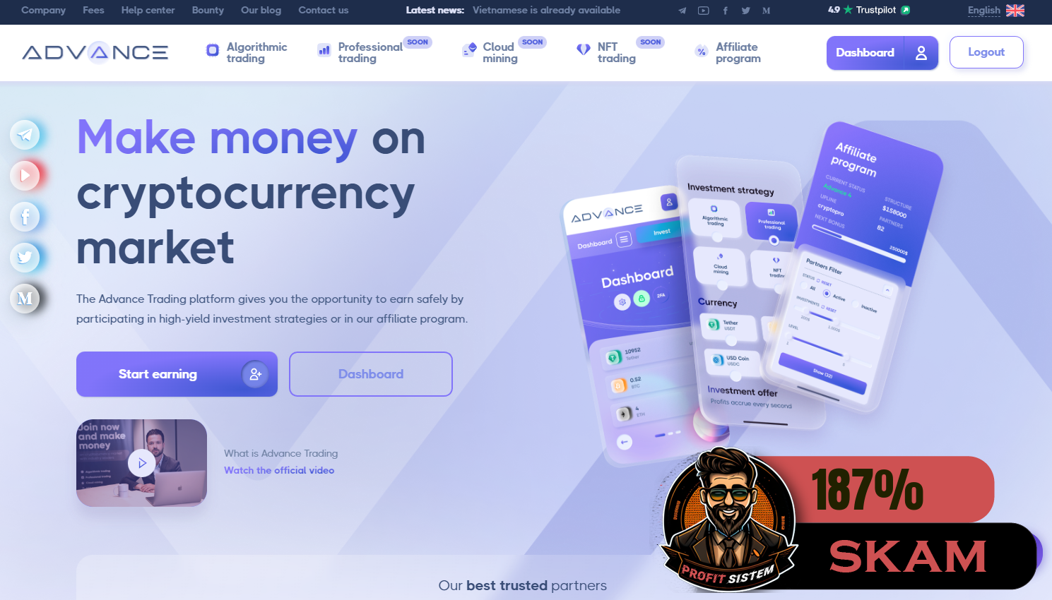 AdvanceTrading - Описание Выплаты Статистика проекта | Хайп мониторинг ProfitSistem | Блог о инвестициях и Хайп проектах | HYIP monitoring
