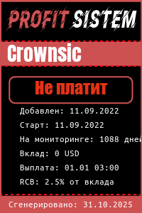 Crownsic - Описание Выплаты Статистика проекта | Хайп мониторинг ProfitSistem | Блог о инвестициях и Хайп проектах | HYIP monitoring