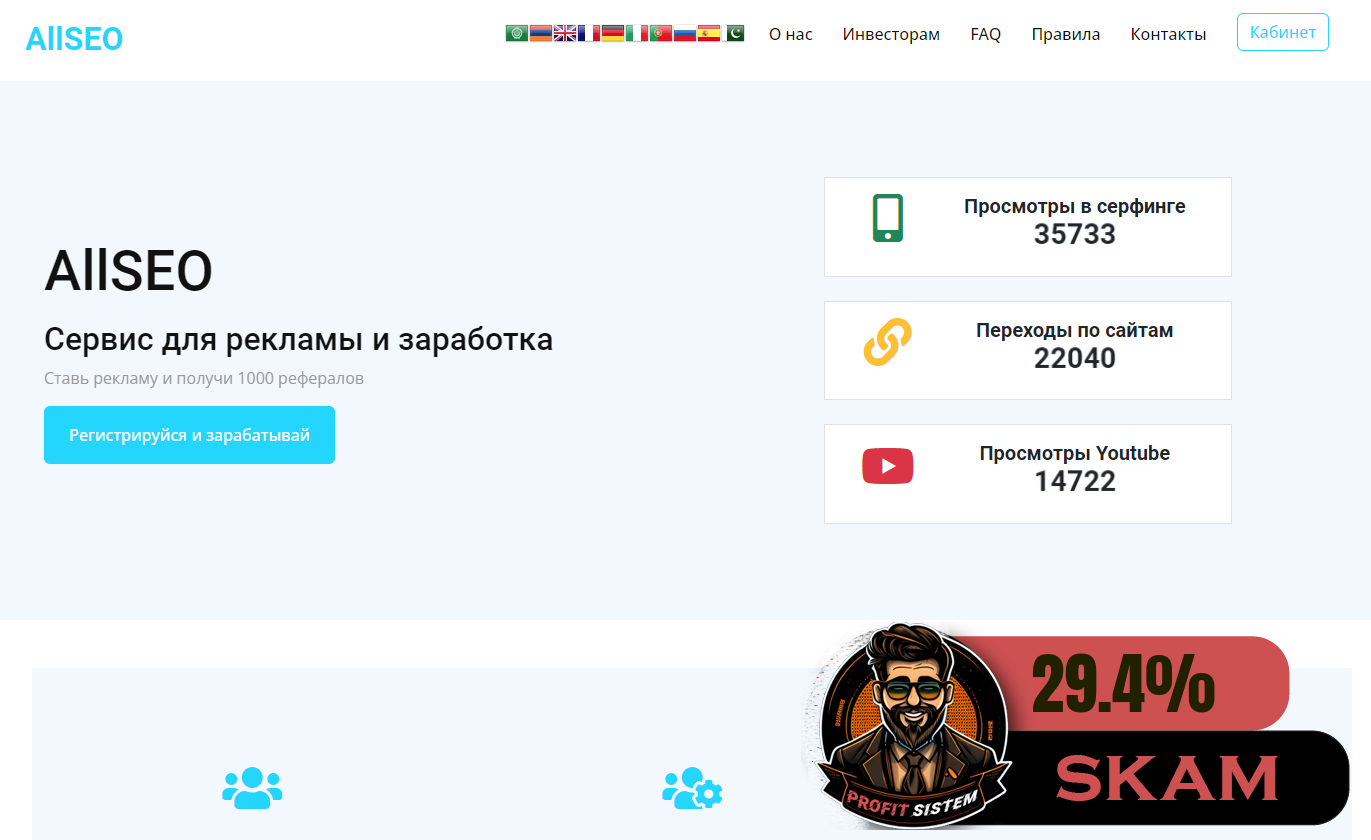 Allseo - Описание Выплаты Статистика проекта | Хайп мониторинг ProfitSistem | Блог о инвестициях и Хайп проектах | HYIP monitoring