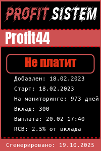 Profit44 - Описание Выплаты Статистика проекта | Хайп мониторинг ProfitSistem | Блог о инвестициях и Хайп проектах | HYIP monitoring