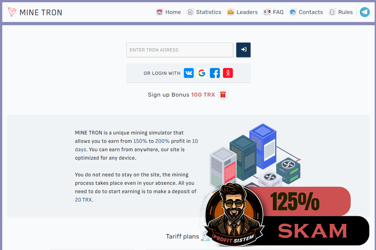 Решил присоединиться к интересному проекту. Наблюдал за ним с самого старта. Админ тут рабочий. Прошлые его проекты давали заработать. Не смотря на то что проект прошел 2 круга. Думаю еще совсем не поздно. Проект многим пришелся по вкусу и инвесторы активно идут на Реинвест. Так же тут можно заработать и Без вложений: Сёрфинг. Короткие ссылки. Квесты. Бонус за регистрацию 100 TRX Для заработка с вложениями есть несколько тарифных планов. Срок вложений всего 10 дней. Прибыль составит от 150% до 200% За данный срок. Чем выше вклад, тем выше прибыль. Ежедневно выходит от 15% до 20% Начисление прибыли каждую секунду. Из платежных систем только Tron (TRX) Выплаты мгновенные, инстантом.