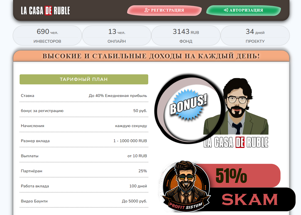 LaCasaDeRuble - Описание Выплаты Статистика проекта | Хайп мониторинг ProfitSistem | Блог о инвестициях и Хайп проектах | HYIP monitoring