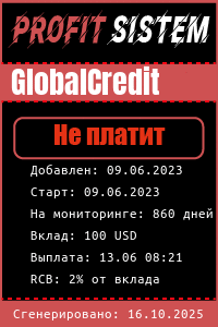 GlobalCredit - Описание Выплаты Статистика проекта | Хайп мониторинг ProfitSistem | Блог о инвестициях и Хайп проектах | HYIP monitoring