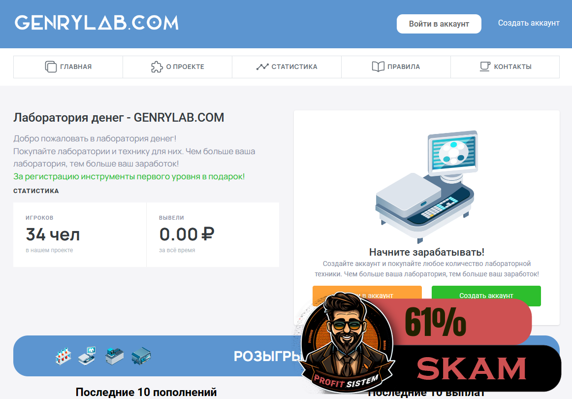 GenryLab - Описание Выплаты Статистика проекта | Хайп мониторинг ProfitSistem | Блог о инвестициях и Хайп проектах | HYIP monitoring