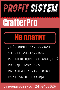 CrafterPro - Описание Выплаты Статистика проекта | Хайп мониторинг ProfitSistem | Блог о инвестициях и Хайп проектах | HYIP monitoring