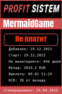 MermaidGame - Описание Выплаты Статистика проекта | Хайп мониторинг ProfitSistem | Блог о инвестициях и Хайп проектах | HYIP monitoring