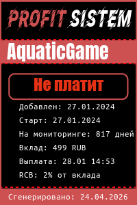 AquaticGame - Описание Выплаты Статистика проекта | Хайп мониторинг ProfitSistem | Блог о инвестициях и Хайп проектах | HYIP monitoring