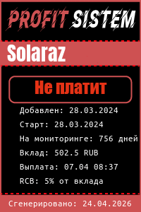 Solaraz - Описание Выплаты Статистика проекта | Хайп мониторинг ProfitSistem | Блог о инвестициях и Хайп проектах | HYIP monitoring