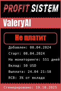 ValeryAI - Описание Выплаты Статистика проекта | Хайп мониторинг ProfitSistem | Блог о инвестициях и Хайп проектах | HYIP monitoring