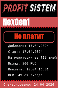 NexGen1 - Описание Выплаты Статистика проекта | Хайп мониторинг ProfitSistem | Блог о инвестициях и Хайп проектах | HYIP monitoring