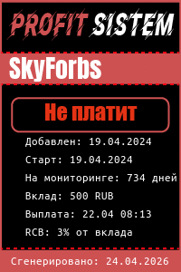 SkyForbs - Описание Выплаты Статистика проекта | Хайп мониторинг ProfitSistem | Блог о инвестициях и Хайп проектах | HYIP monitoring