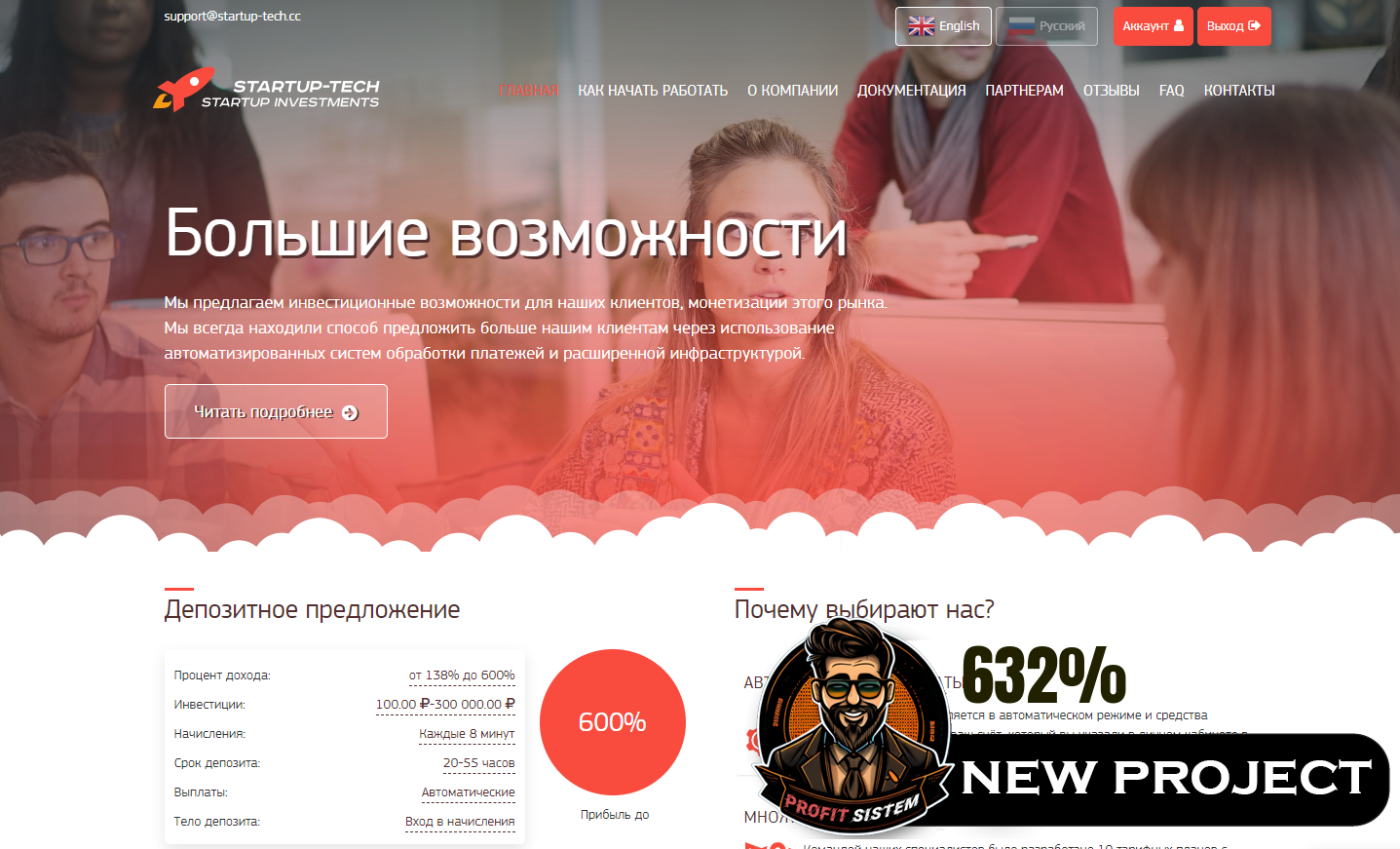 На проверке свеженький проект. Старт состоялся только что Админ тут многим знаком. Начисления в проекте частые. 🔸🔸🔸🔸🔸🔸🔸🔸🔸🔸🔸🔸 Множество тарифных планов. Рекомендую смотреть на первый: 1️⃣ 138% за 55 часов. ➖ От 100 до 400 RUB ➖ Начисление: каждые 8 минут. 🔸🔸🔸🔸🔸🔸🔸🔸🔸🔸🔸🔸 Популярные платежные системы. Рекомендую использовать 𝗣𝗮𝘆𝗲𝗲𝗿, для получения 𝐑𝐞𝐟𝐁𝐚𝐜𝐤`𝐚 💸 Выплаты мгновенные, 𝐈𝐧𝐬𝐭𝐚𝐧𝐭.