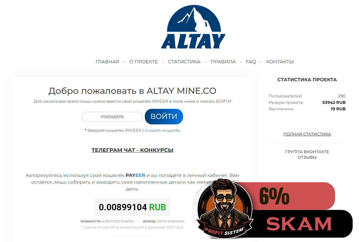 AltayMine - Описание Выплаты Статистика проекта | Хайп мониторинг ProfitSistem | Блог о инвестициях и Хайп проектах | HYIP monitoring