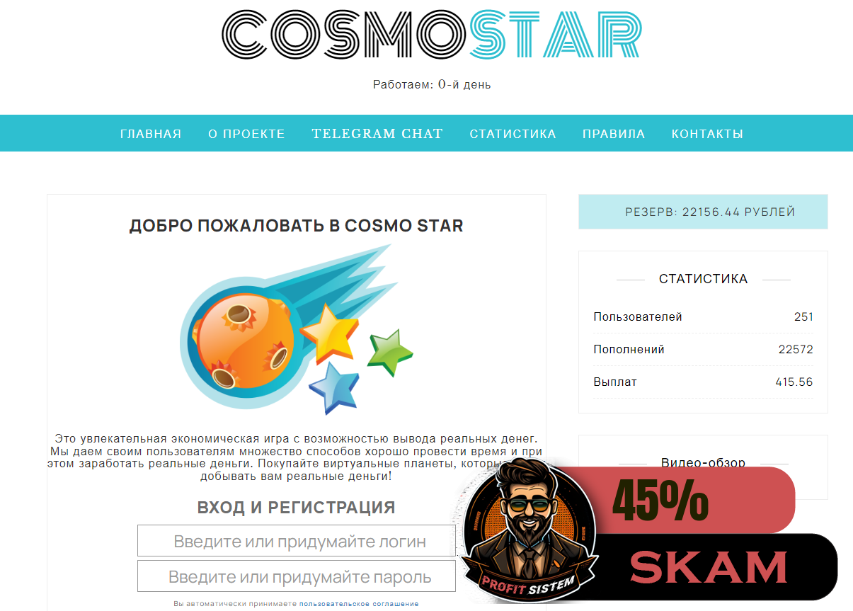 CosmoStars - Описание Выплаты Статистика проекта | Хайп мониторинг ProfitSistem | Блог о инвестициях и Хайп проектах | HYIP monitoring