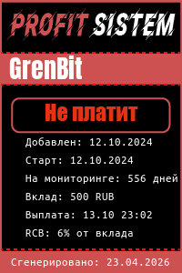 GrenBit - Описание Выплаты Статистика проекта | Хайп мониторинг ProfitSistem | Блог о инвестициях и Хайп проектах | HYIP monitoring