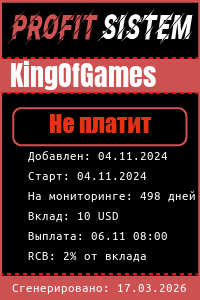 KingOfGames - Описание Выплаты Статистика проекта | Хайп мониторинг ProfitSistem | Блог о инвестициях и Хайп проектах | HYIP monitoring
