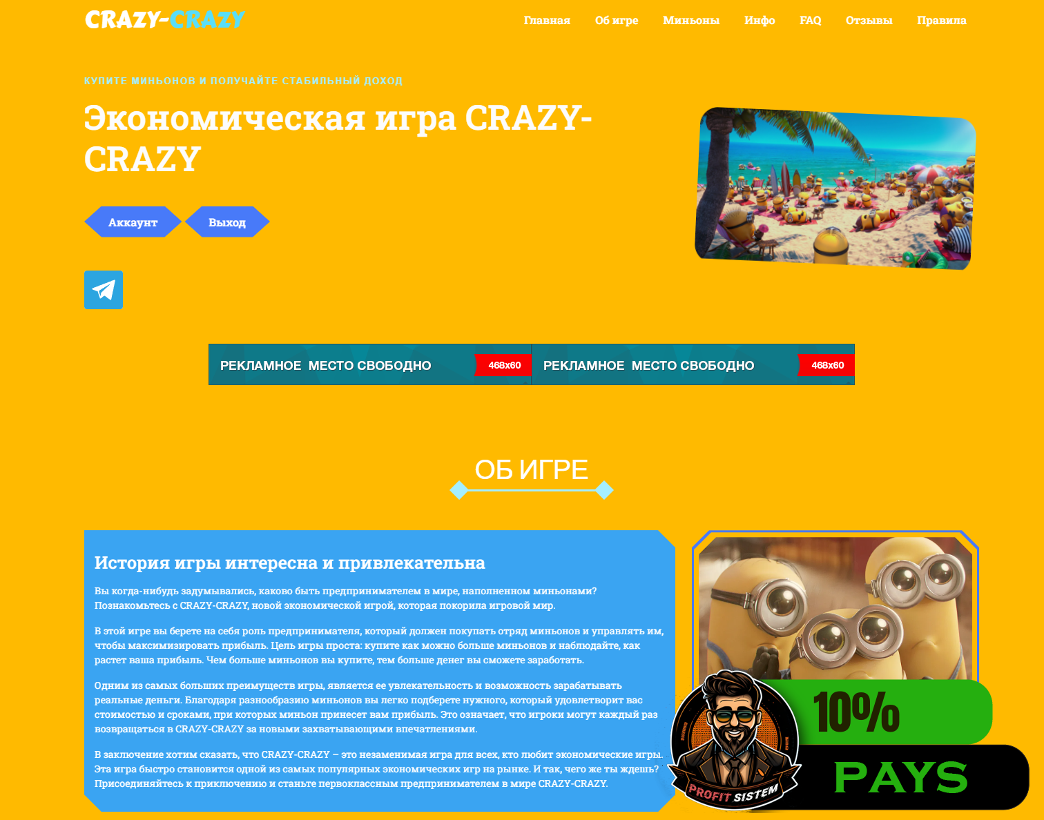 🎮 решил попробовать интересную игру. Старт состоялся уже давно. Проект исправно платит Идет плавное развитие. Маркетинг тут рассчитан на долгую работу. 🔸🔸🔸🔸🔸🔸🔸🔸🔸🔸🔸🔸 Представлено несколько тарифных планов: 1️⃣ 160% за 80 дней. ➖ От 10 до 10 000 RUB ➖ Начисления: каждый день по 2%. 2️⃣ 180% за 60 дней. ➖ От 10 000 до 25 000 RUB ➖ Начисления: каждый день по 3%. 3️⃣ 210% за 35 дней. ➖ От 25 000 до 50 000 RUB ➖ Начисления: каждый день по 6%. 🔸🔸🔸🔸🔸🔸🔸🔸🔸🔸🔸🔸 Из платежных систем только: 𝗣𝗮𝘆𝗲𝗲𝗿 💸 Выплаты мгновенные, 𝐈𝐧𝐬𝐭𝐚𝐧𝐭. 💬 Есть чат в 𝐓𝐞𝐥𝐞𝐠𝐫𝐚𝐦