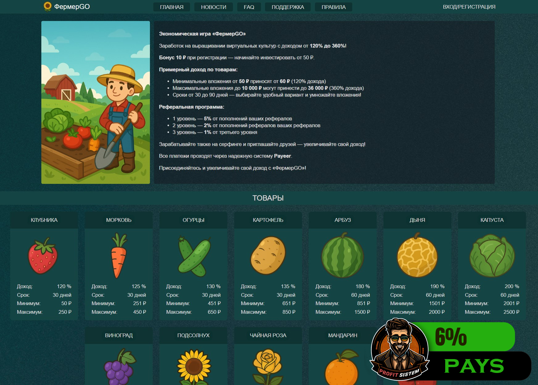 FermerGo - Описание Выплаты Статистика проекта | Хайп мониторинг ProfitSistem | Блог о инвестициях и Хайп проектах | HYIP monitoring