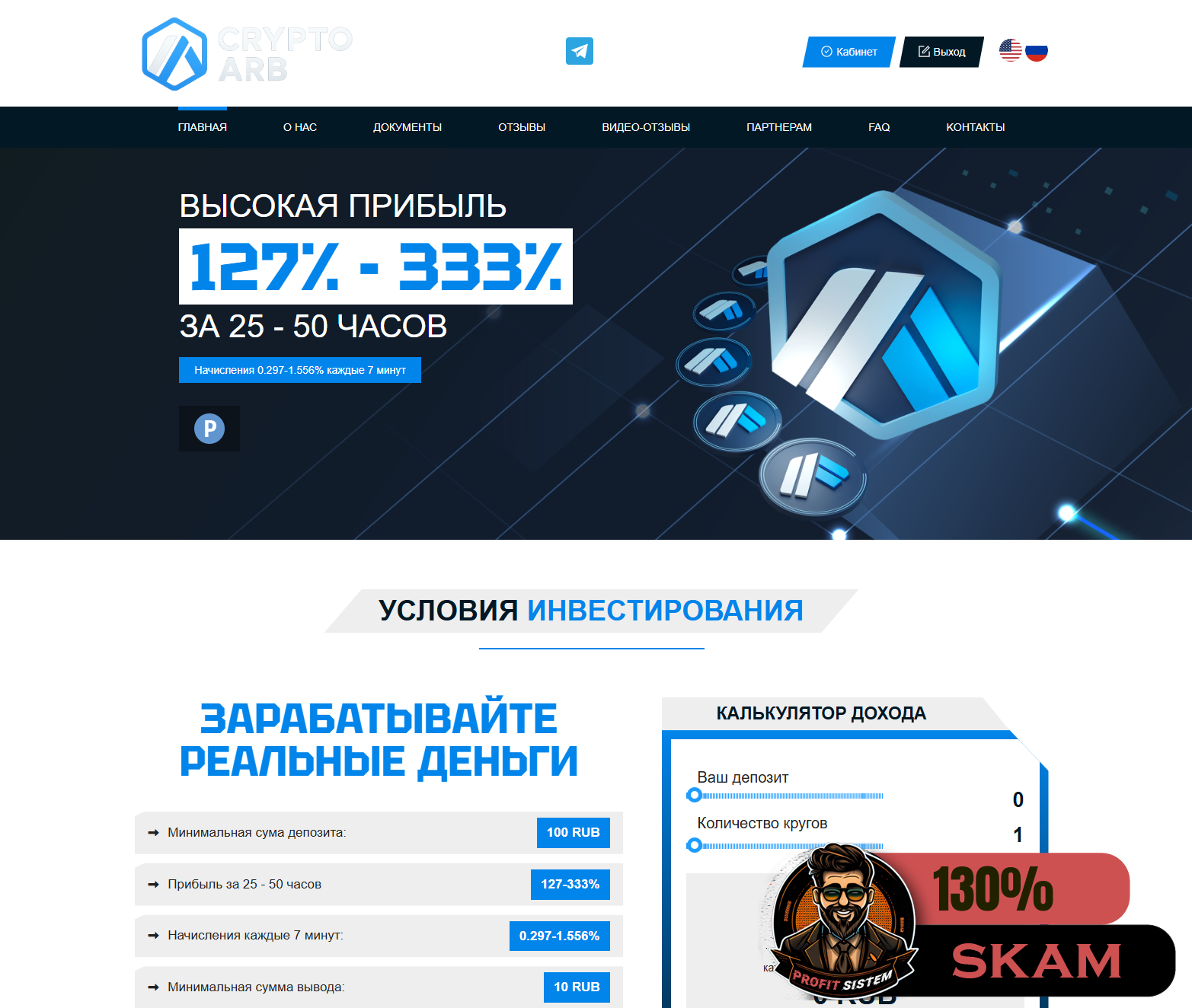 CryptoARB - Описание Выплаты Статистика проекта | Хайп мониторинг ProfitSistem | Блог о инвестициях и Хайп проектах | HYIP monitoring