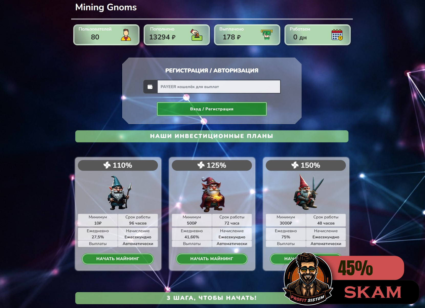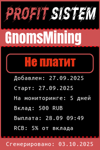 GnomsMining - Описание Выплаты Статистика проекта | Хайп мониторинг ProfitSistem | Блог о инвестициях и Хайп проектах | HYIP monitoring