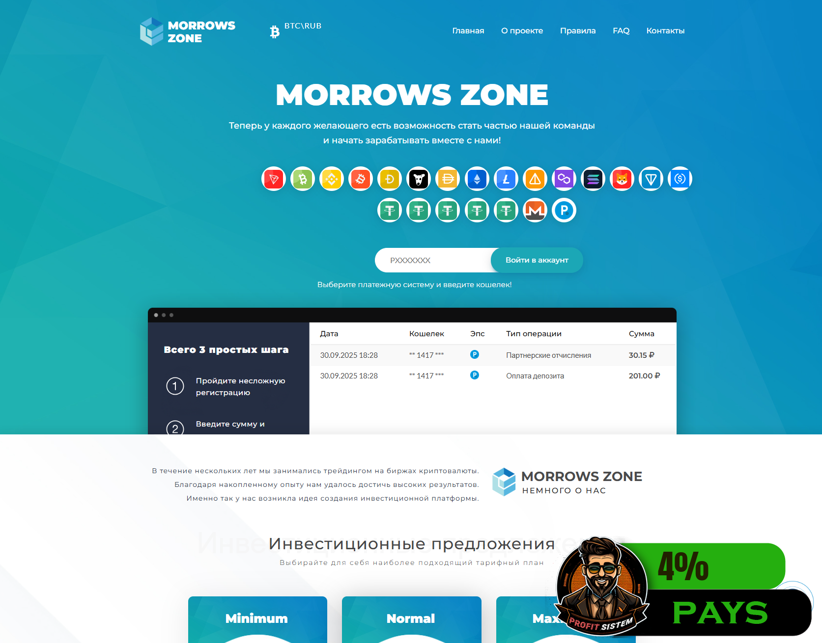 MorrowsZone - Описание Выплаты Статистика проекта | Хайп мониторинг ProfitSistem | Блог о инвестициях и Хайп проектах | HYIP monitoring