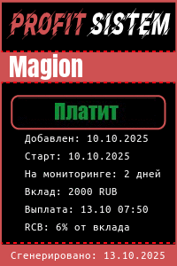 Magion - Описание Выплаты Статистика проекта | Хайп мониторинг ProfitSistem | Блог о инвестициях и Хайп проектах | HYIP monitoring