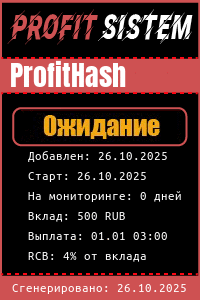 ProfitHash - Описание Выплаты Статистика проекта | Хайп мониторинг ProfitSistem | Блог о инвестициях и Хайп проектах | HYIP monitoring