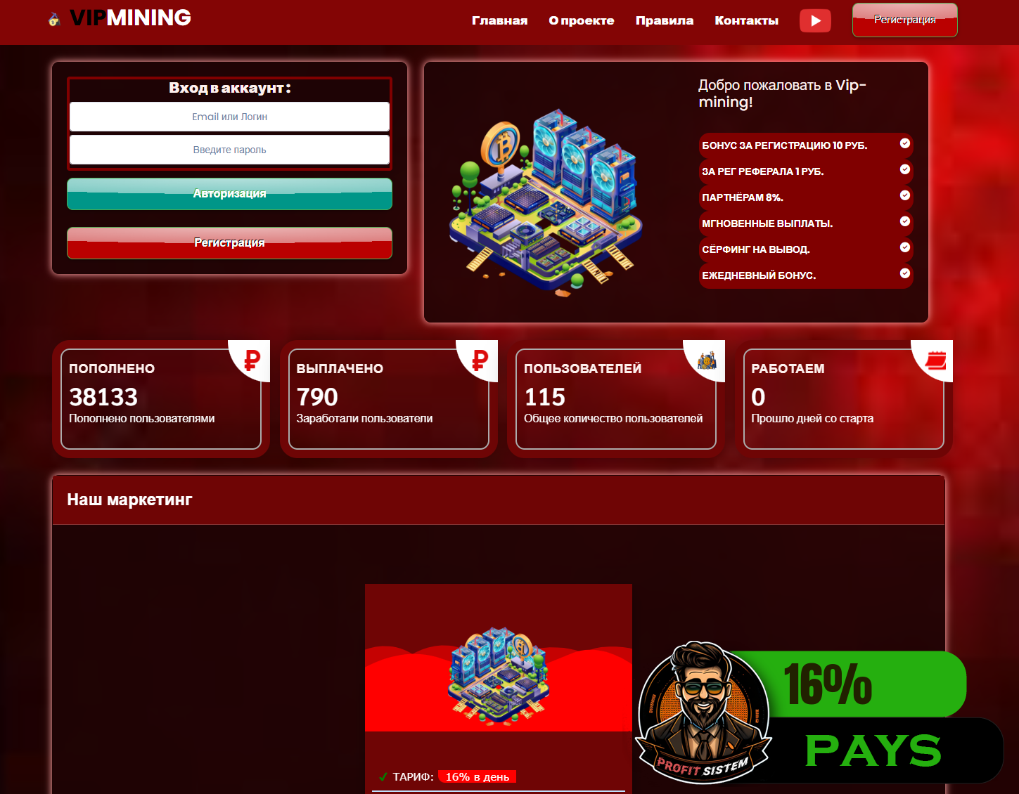 VipMining - Описание Выплаты Статистика проекта | Хайп мониторинг ProfitSistem | Блог о инвестициях и Хайп проектах | HYIP monitoring
