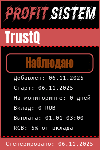 TrustQ - Описание Выплаты Статистика проекта | Хайп мониторинг ProfitSistem | Блог о инвестициях и Хайп проектах | HYIP monitoring