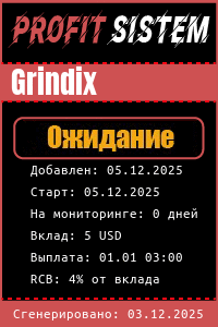 Grindix - Описание Выплаты Статистика проекта | Хайп мониторинг ProfitSistem | Блог о инвестициях и Хайп проектах | HYIP monitoring