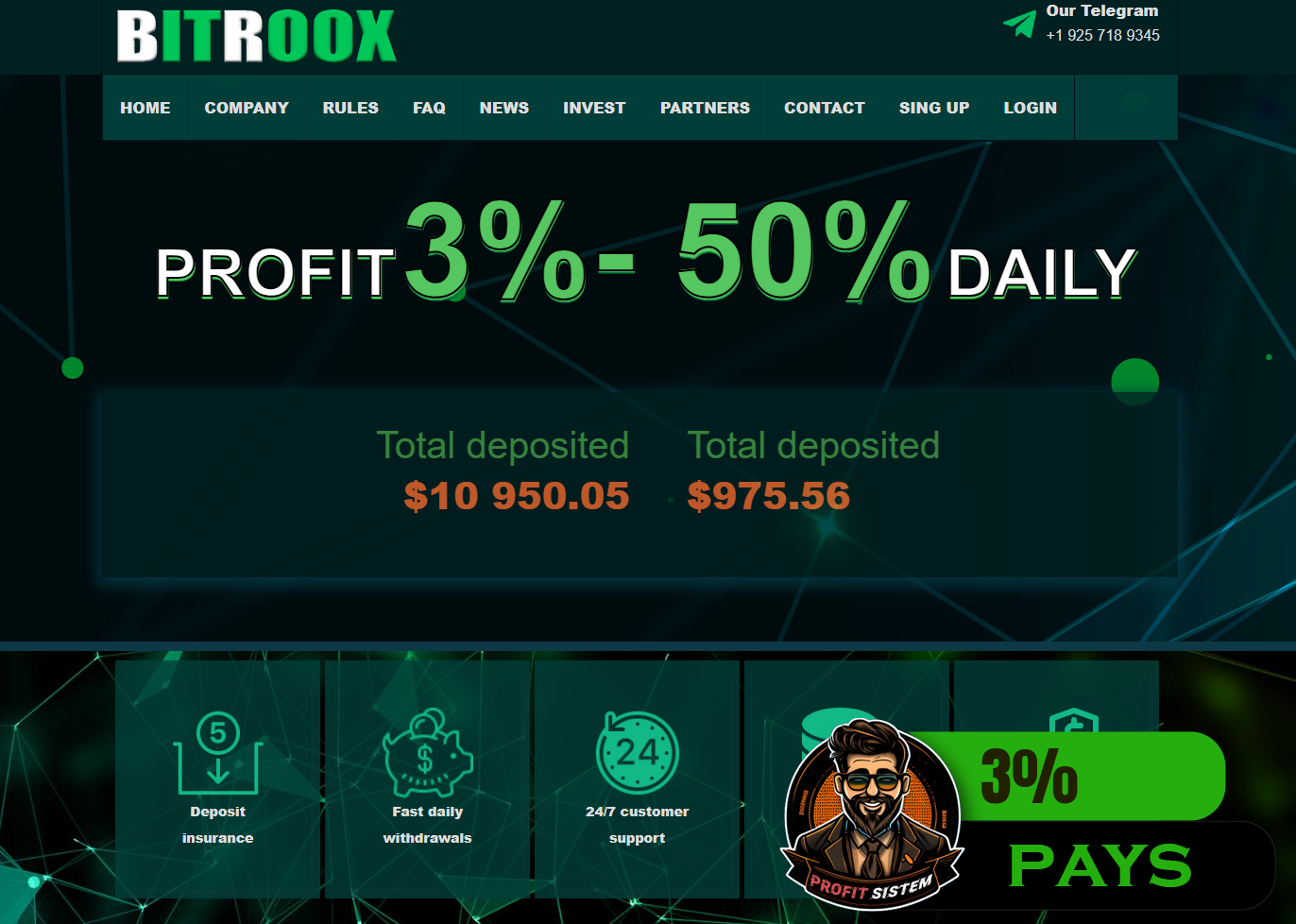Bitroox - Описание Выплаты Статистика проекта | Хайп мониторинг ProfitSistem | Блог о инвестициях и Хайп проектах | HYIP monitoring