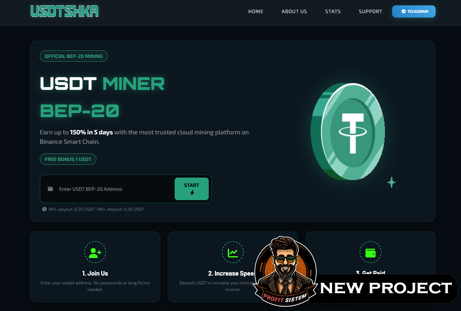 USDTshka - Описание Выплаты Статистика проекта | Хайп мониторинг ProfitSistem | Блог о инвестициях и Хайп проектах | HYIP monitoring