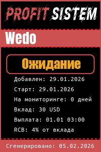 Wedo - Описание Выплаты Статистика проекта | Хайп мониторинг ProfitSistem | Блог о инвестициях и Хайп проектах | HYIP monitoring