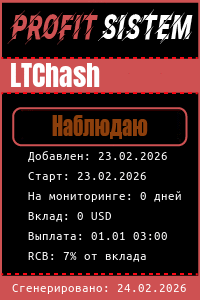 LTChash - Описание Выплаты Статистика проекта | Хайп мониторинг ProfitSistem | Блог о инвестициях и Хайп проектах | HYIP monitoring
