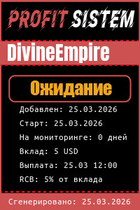 DivineEmpire - Описание Выплаты Статистика проекта | Хайп мониторинг ProfitSistem | Блог о инвестициях и Хайп проектах | HYIP monitoring