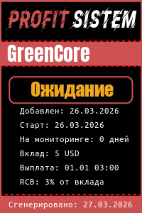 GreenCore - Описание Выплаты Статистика проекта | Хайп мониторинг ProfitSistem | Блог о инвестициях и Хайп проектах | HYIP monitoring