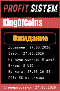 KingOfCoins - Описание Выплаты Статистика проекта | Хайп мониторинг ProfitSistem | Блог о инвестициях и Хайп проектах | HYIP monitoring