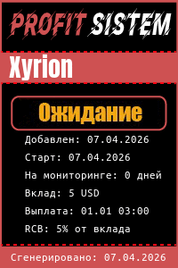 Xyrion - Описание Выплаты Статистика проекта | Хайп мониторинг ProfitSistem | Блог о инвестициях и Хайп проектах | HYIP monitoring