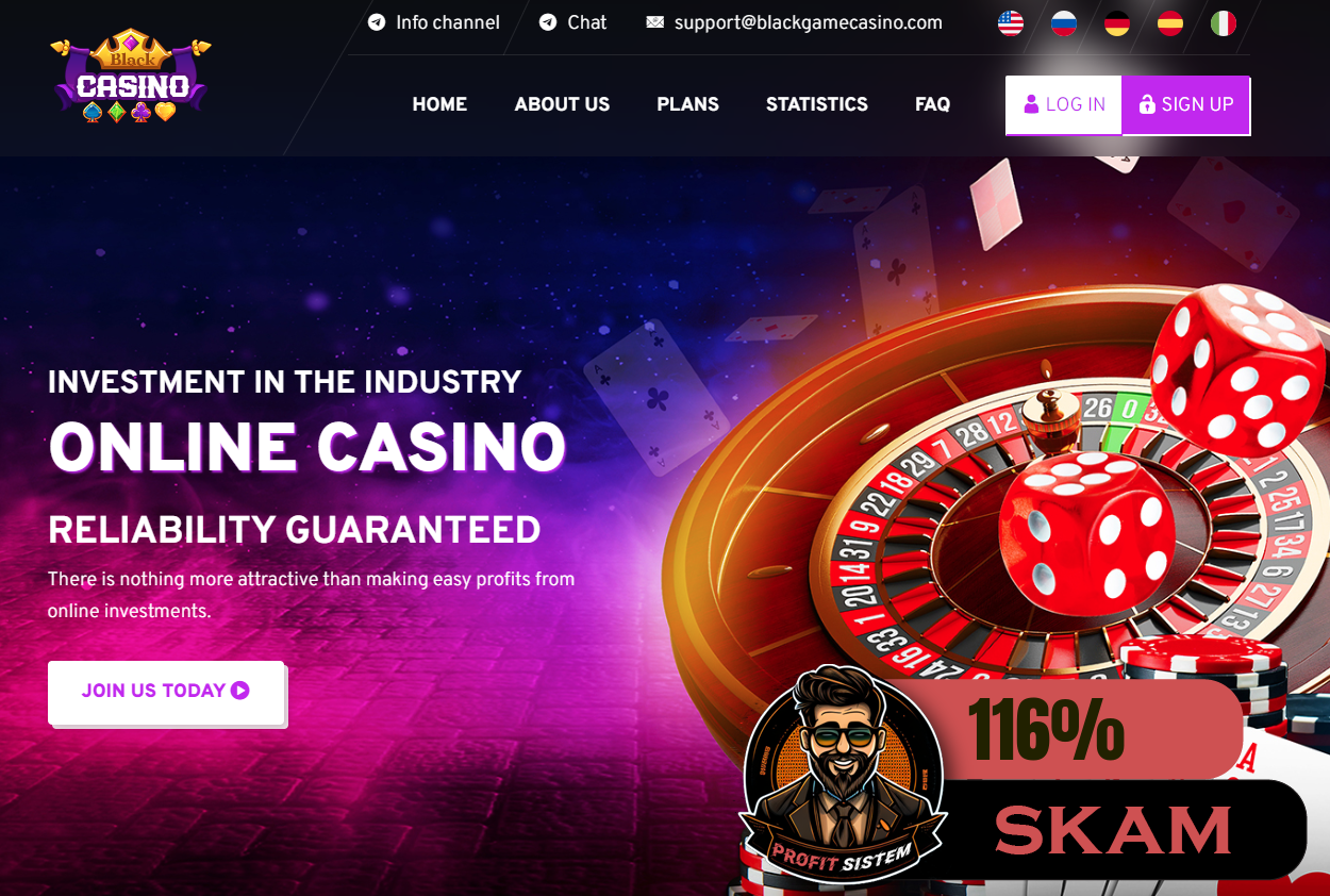 BlackGameCasino - Описание Выплаты Статистика проекта | Хайп мониторинг ProfitSistem | Блог о инвестициях и Хайп проектах | HYIP monitoring